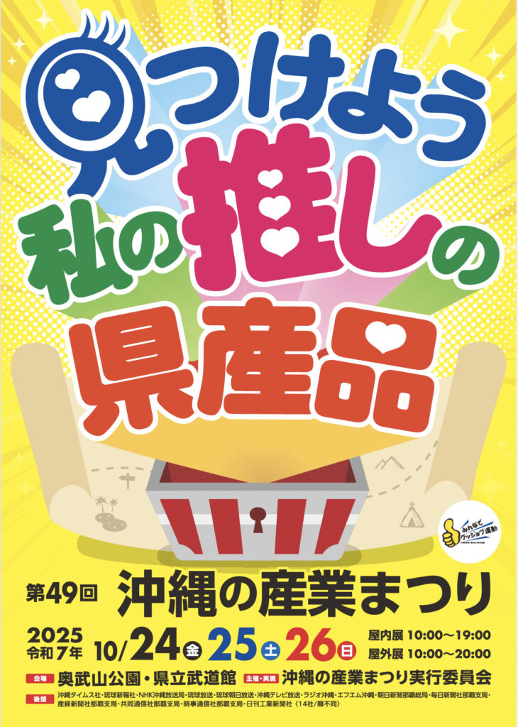 今年も第49回沖縄の産業まつりに出展いたします。10月24日(金)、25日(土)、26日(日)と3日間の開催となります。お近くにお立ち寄りの際は、ぜひ仲善ブースまで遊びに来てください。皆様のお越しをお待ちしております。